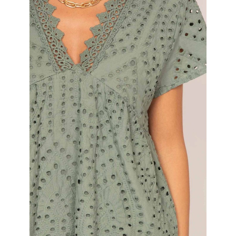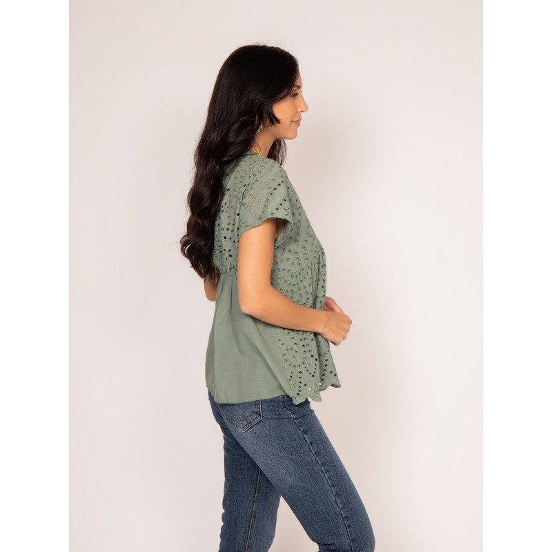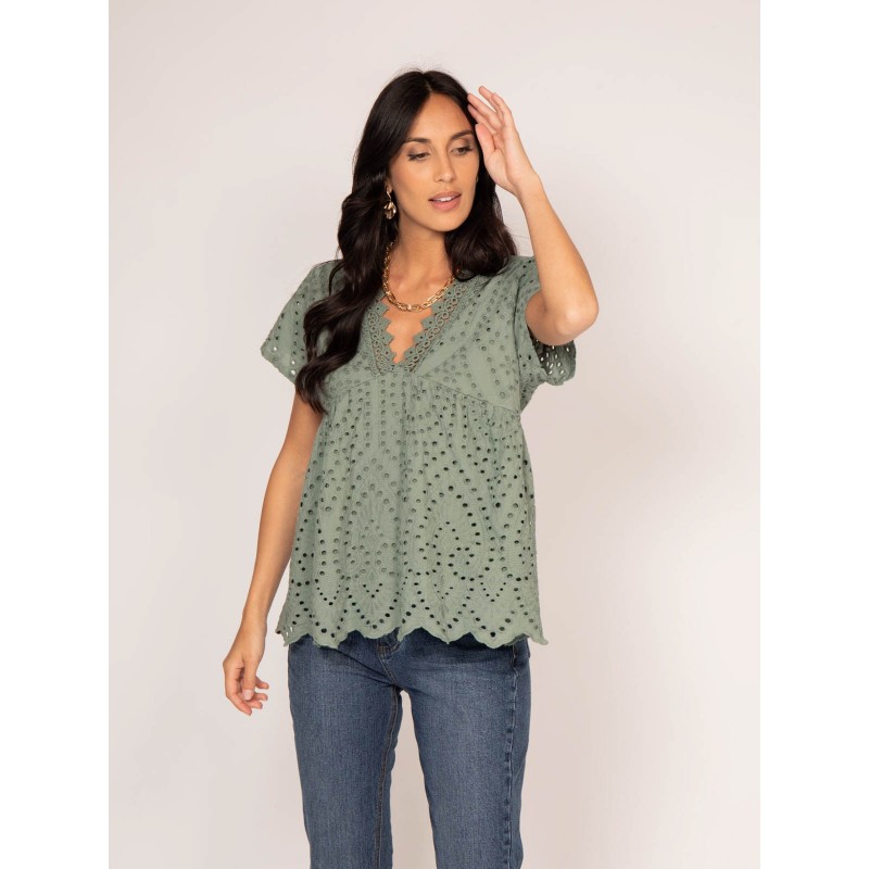 Allure romantique pour ce top en broderies anglaises signé Dona Lisa. Le vêtement souffle le chaud et le froid en associant coupe sage et jeux de broderies anglaises qui laissent voir la peau. Un haut au joli volume, à porter avec une pièce chic ou plus cool, selon l'humeur du moment.