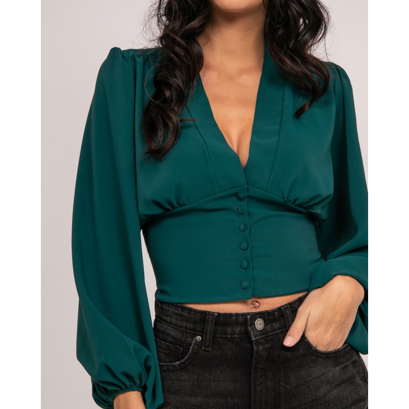 Ce top Dona Lisa dessine une silhouette résolument raffinée, avec sa composition en tissu léger et vaporeux. Flatteur et intemporel, il s'agrémente de longues manches bouffantes, d'une encolure en pointe et d'une taille parfaitement ajustée et ornée d'une rangée de boutons recouverts. Associez cette blouse glamour à des pièces casual comme un simple jean noir et une paire de bottines.