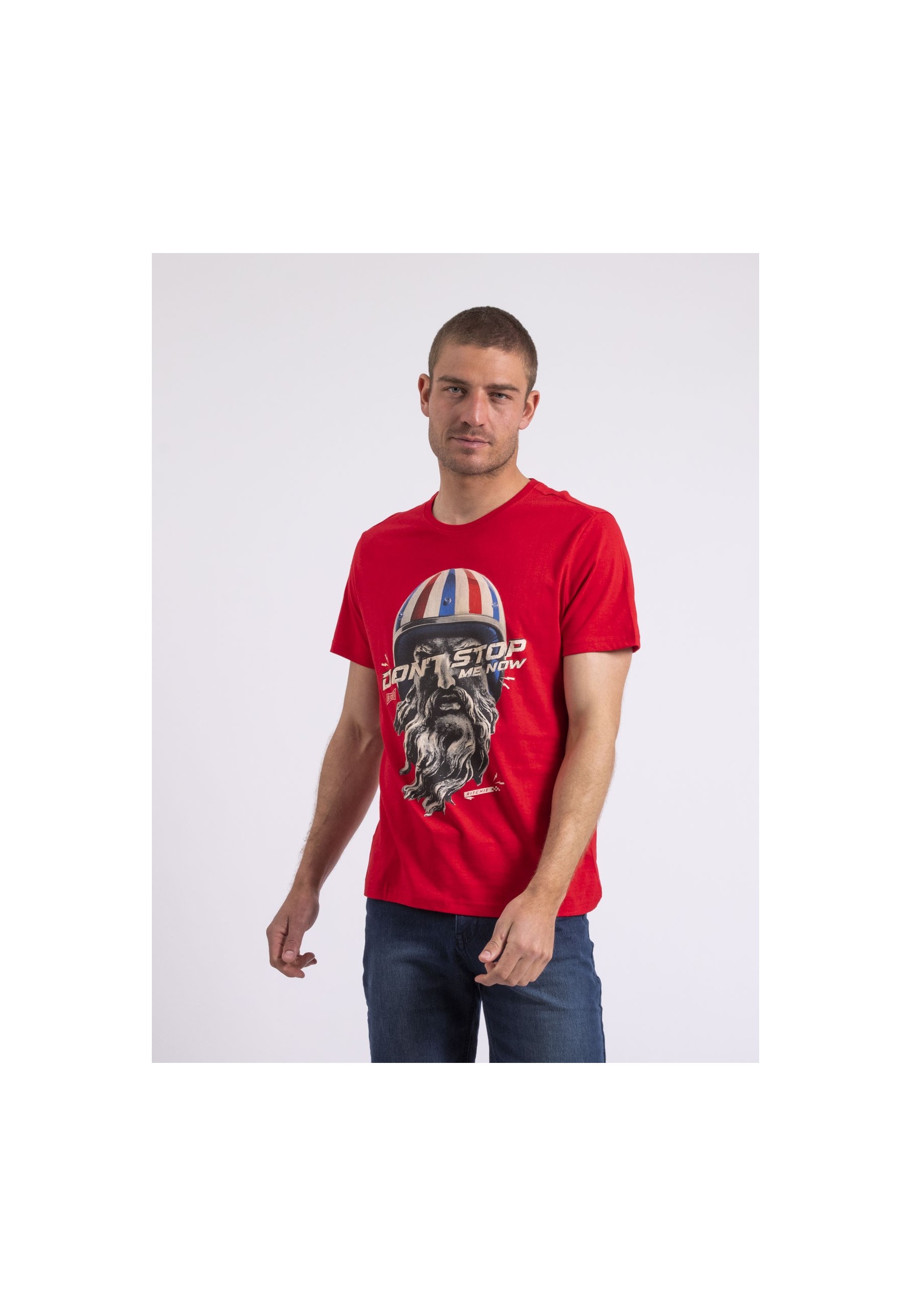 Rehaussé d'un motif imprimé "rider" sur le devant, ce tee shirt en pur coton signé Ritchie Jeans évoque l'esprit vintage du rêve californien. Son col rond, ses manches courtes et sa coupe classique garantissent un confort optimal. Combinez ce T-shirt léger avec un jean ou bermuda en denim de notre collection et des baskets basses pour un style estival fashion.