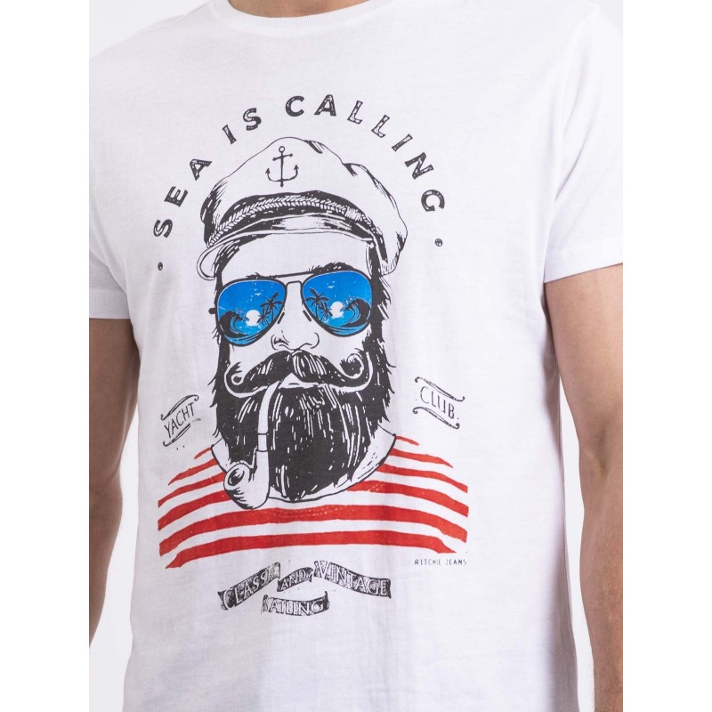 Décliné dans une coupe décontractée, ce T-shirt en coton Ritchie Jeans s'agrémente de manches courtes, d'un col rond et d'un imprimé contrastant sur le devant dans un style estival. Changez des modèles unis en accordant ce tee-shirt à motifs avec un bermuda et une paire de sandales.