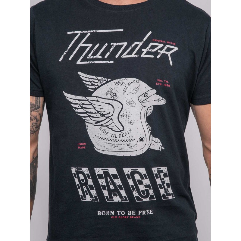 Mettez le cap sur un style audacieux avec le T-shirt JOCTOGONE de Ritchie Jeans. Son imprimé "Thunder Race" inspiré de l’univers moto et racing insuffle une énergie rebelle et moderne, parfait pour donner du caractère à vos looks d’hiver.