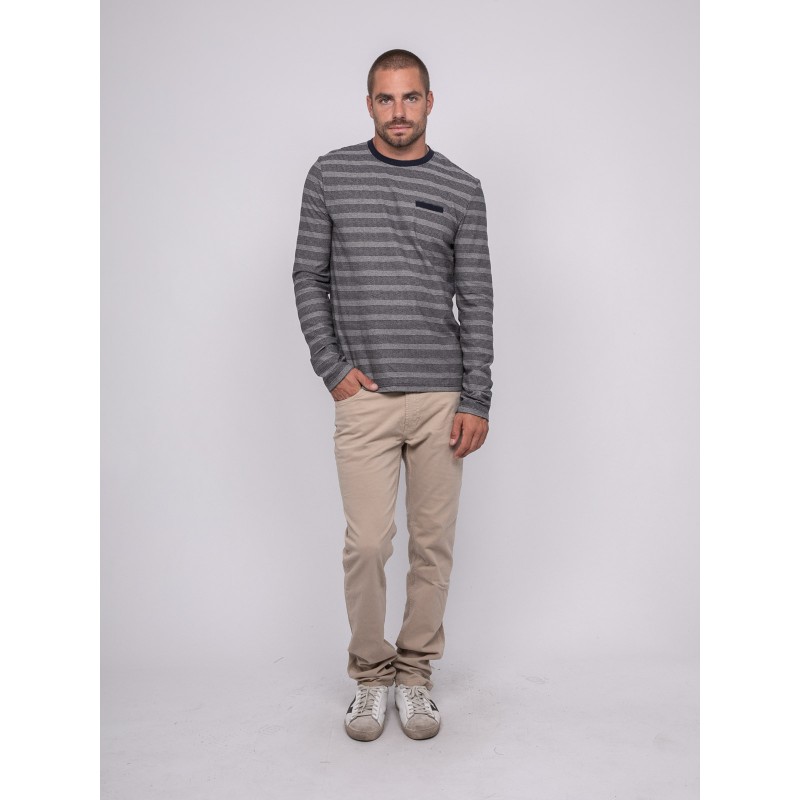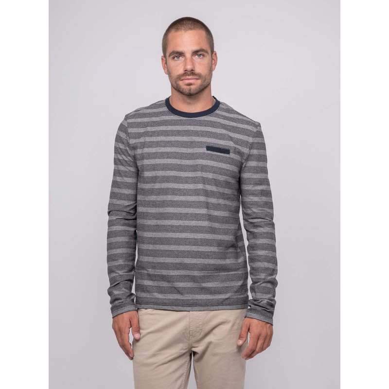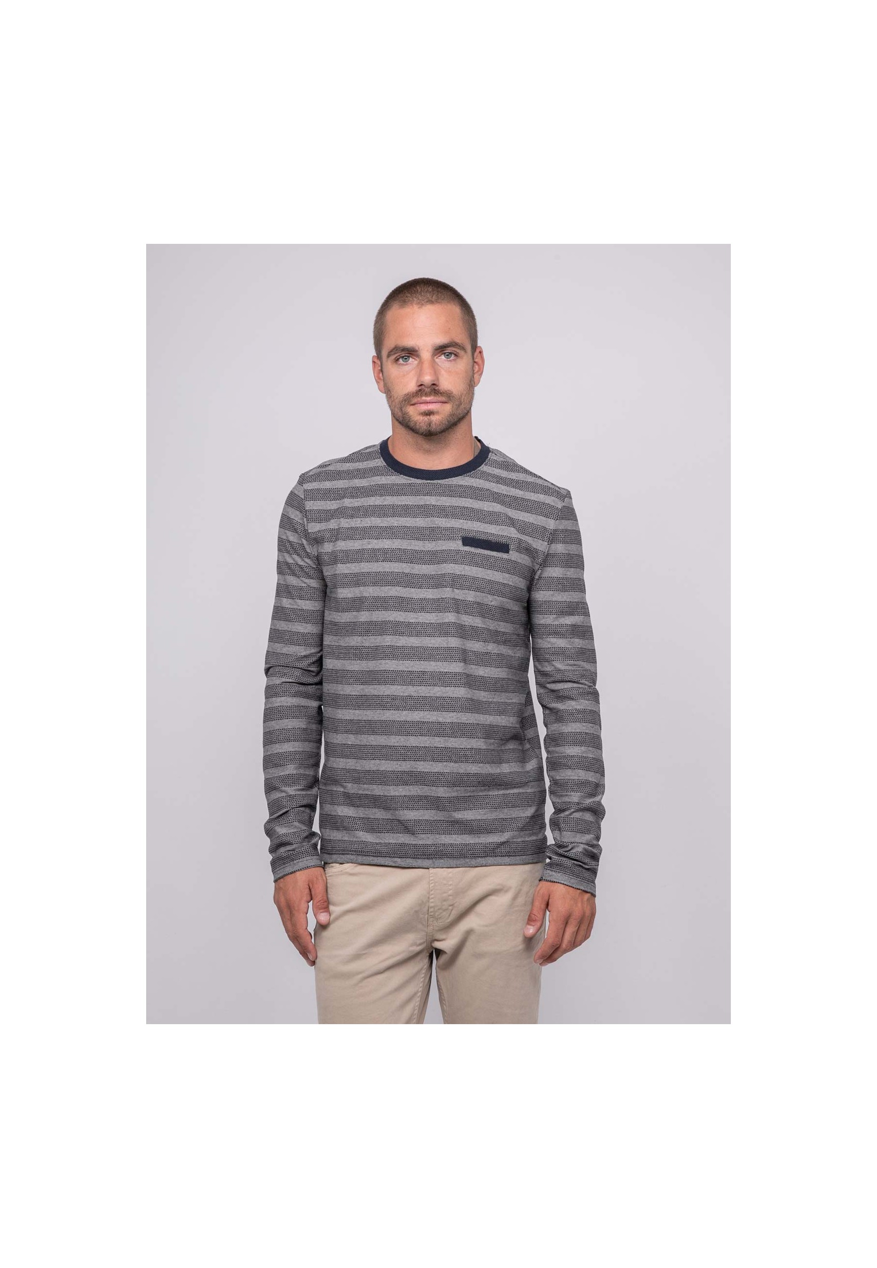 Optez pour un look casual et tendance avec le t-shirt manches longues rayé JUNANINE de Ritchie Jeans. Ses rayures horizontales apportent un style sobre et masculin, idéal pour la saison automne-hiver. Confortable et moderne, il se porte facilement avec un jean brut ou un chino pour un look urbain.