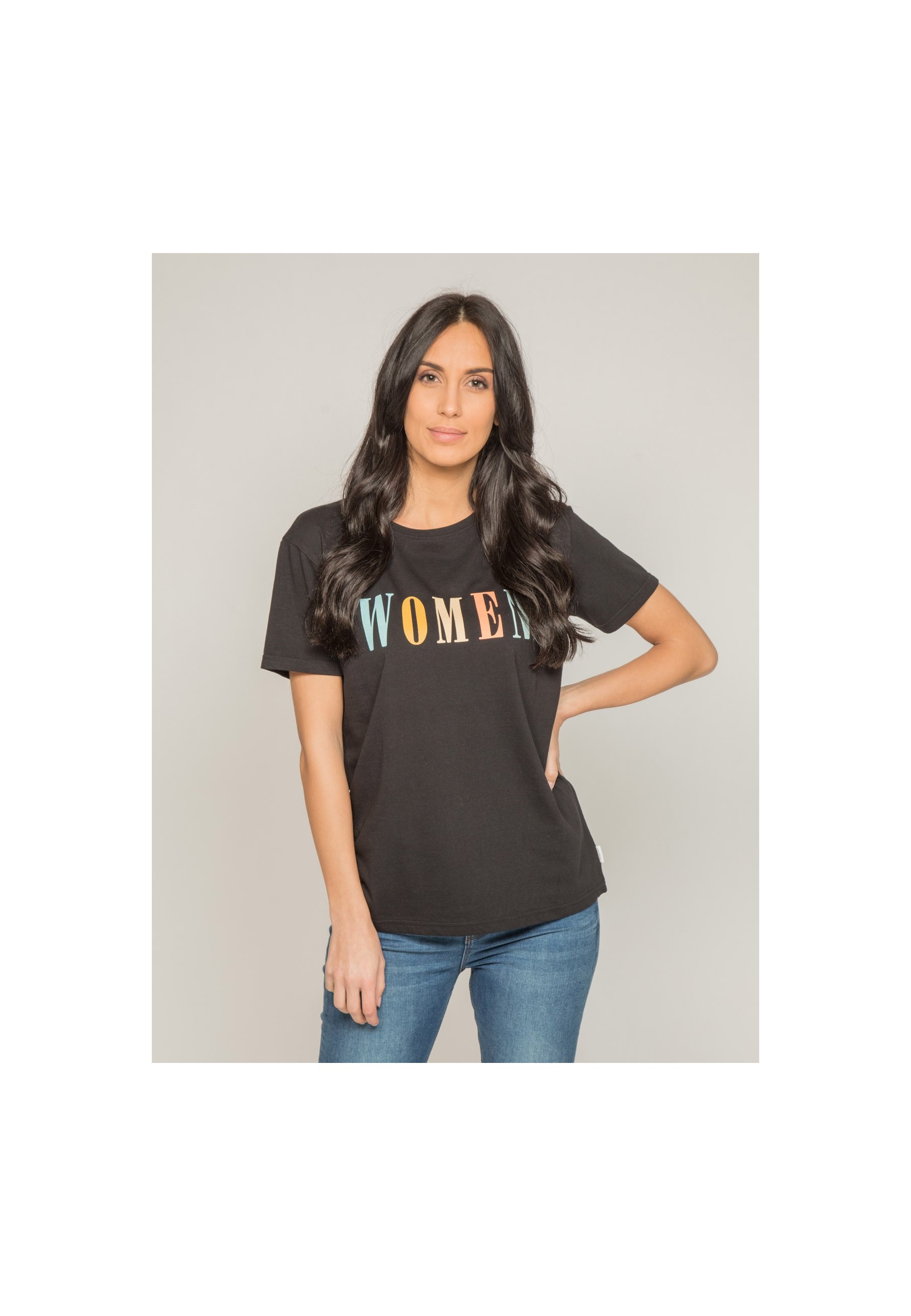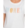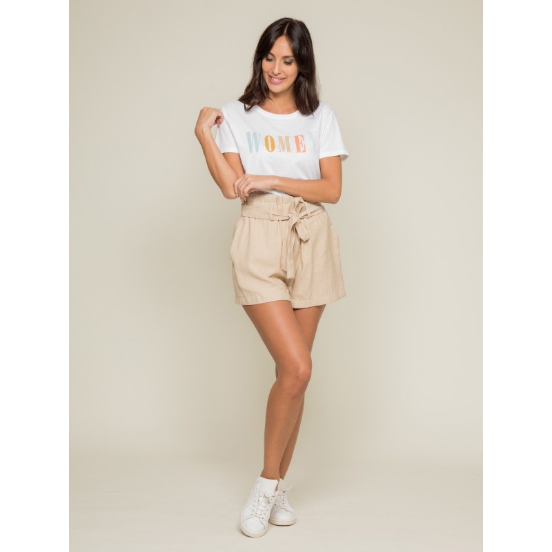 Adoptez ce tee-shirt Dona Lisa et son inscription "WOMEN". Avec son coloris intemporel, il s'accordera parfaitement avec notre short taille haute XURIT ou notre pantalon fluide plissé EDOUARD pour un look basique et féminin.