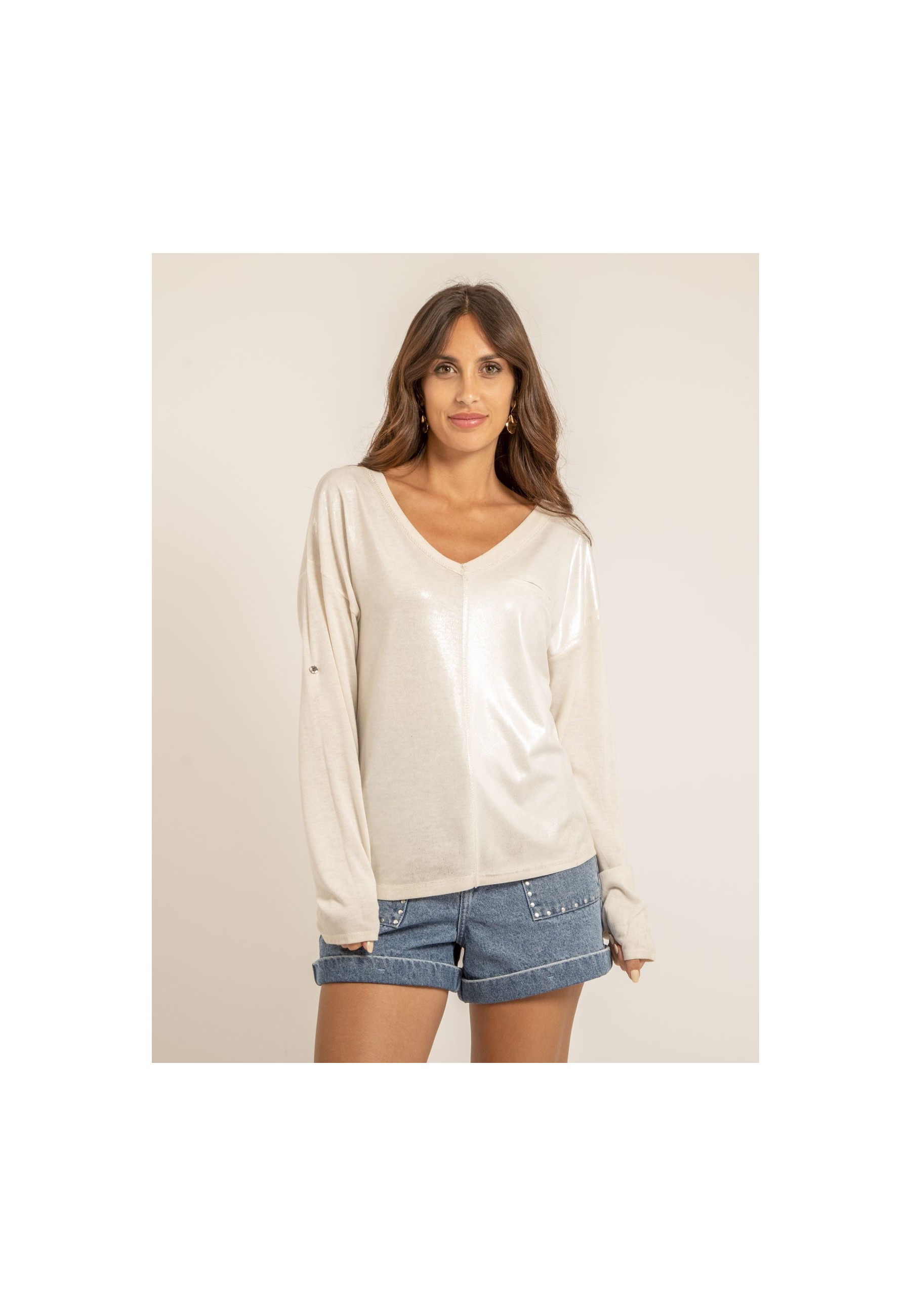 Cet élégant top Dona Lisa à la coupe droite se distingue par sa légèreté et sa brillance qui lui confèrent une allure féminine et tendance. S'associera très bien avec un pantalon ou un jean de notre collection.