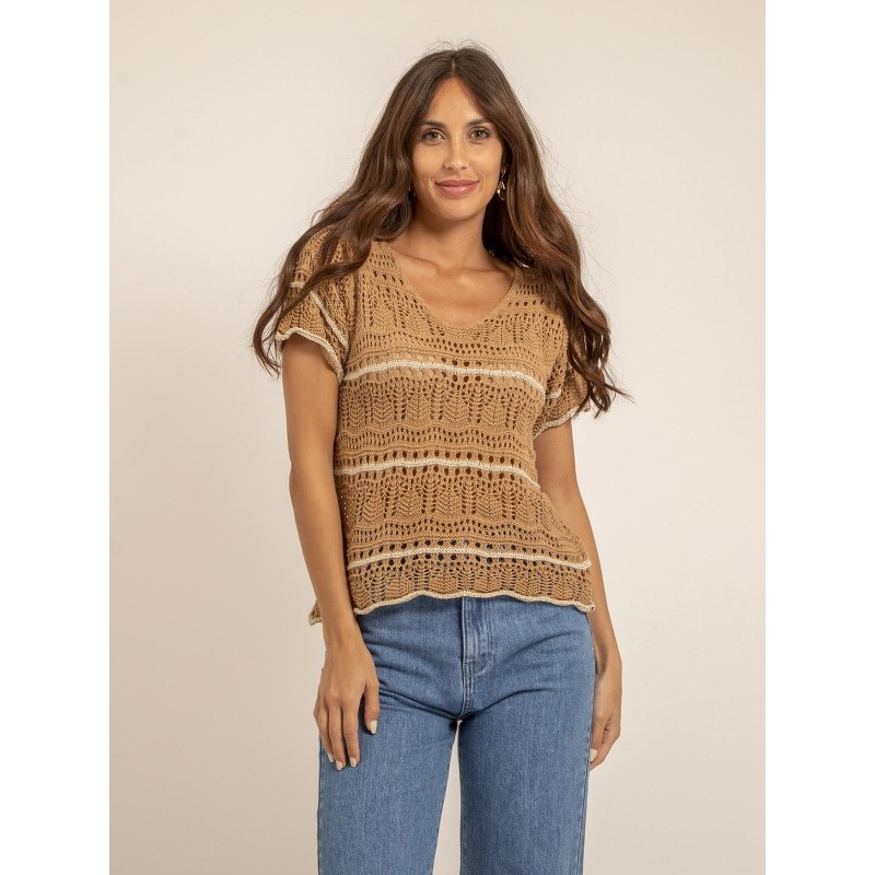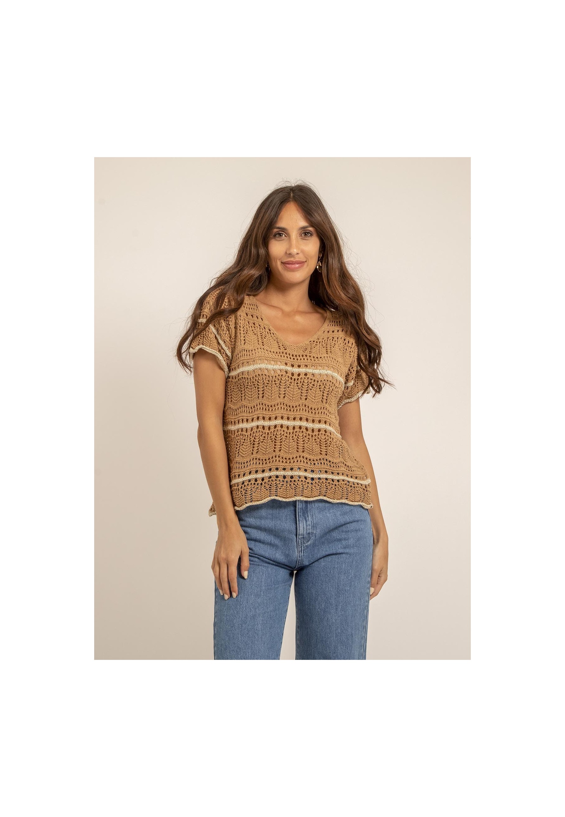 Détails produit Manches courtes Col V Coupe droite Maille Composition et entretien 50% acrylique, 50% coton Lavage en machine à 30° Conseils taille Le mannequin mesure 172 cm et porte l'article en taille S/M En savoir plus >