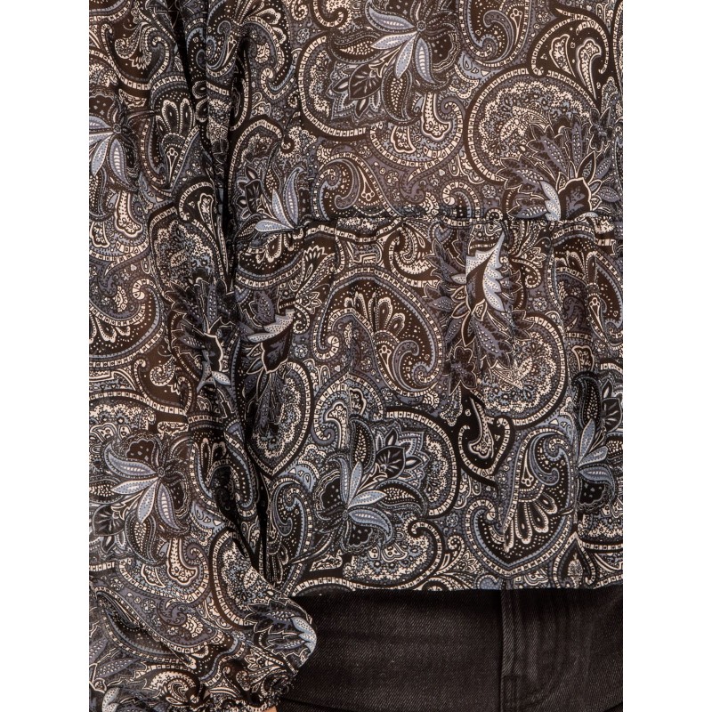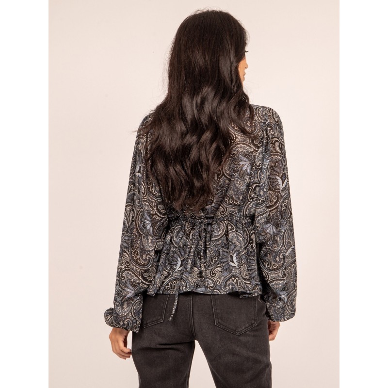 Ce top à manches longues Dona Lisa se distingue par ses manches bouffantes resserrées aux poignets et son col rond, qui lui confèrent une allure sophistiquée et féminine. Le motif cachemire créera des nuances en jouant avec la transparence maitrisée du tissu. Porté avec un jean de notre collection, cette blouse féminine apportera une note élégante à toutes vos tenues.