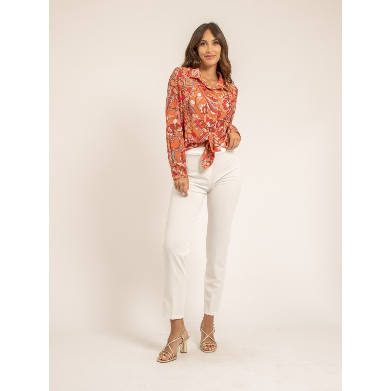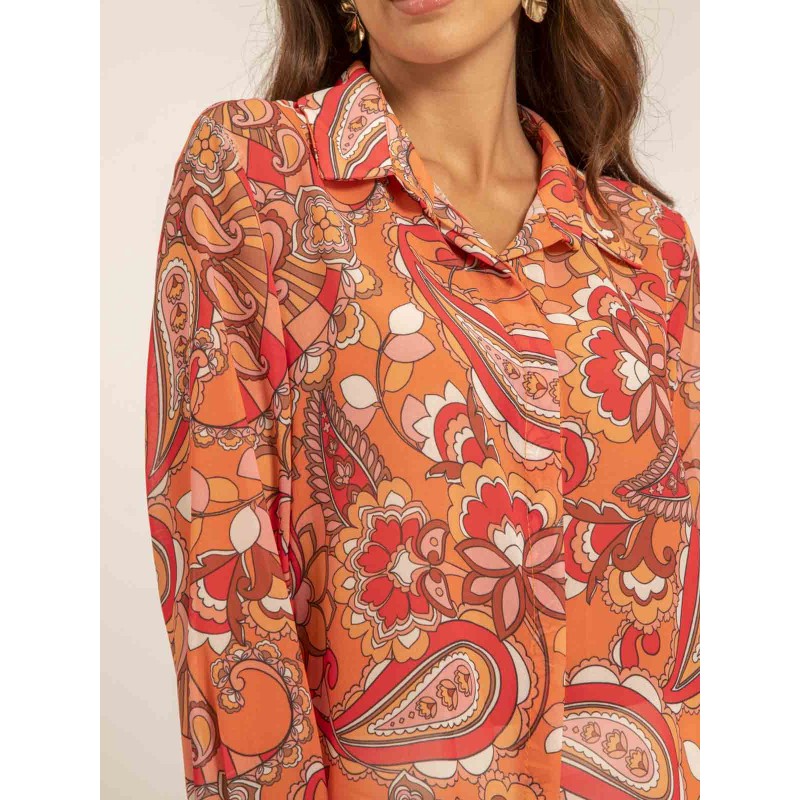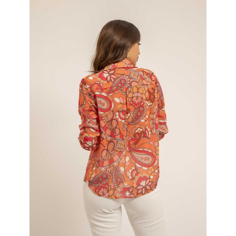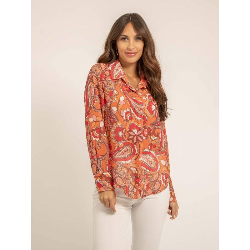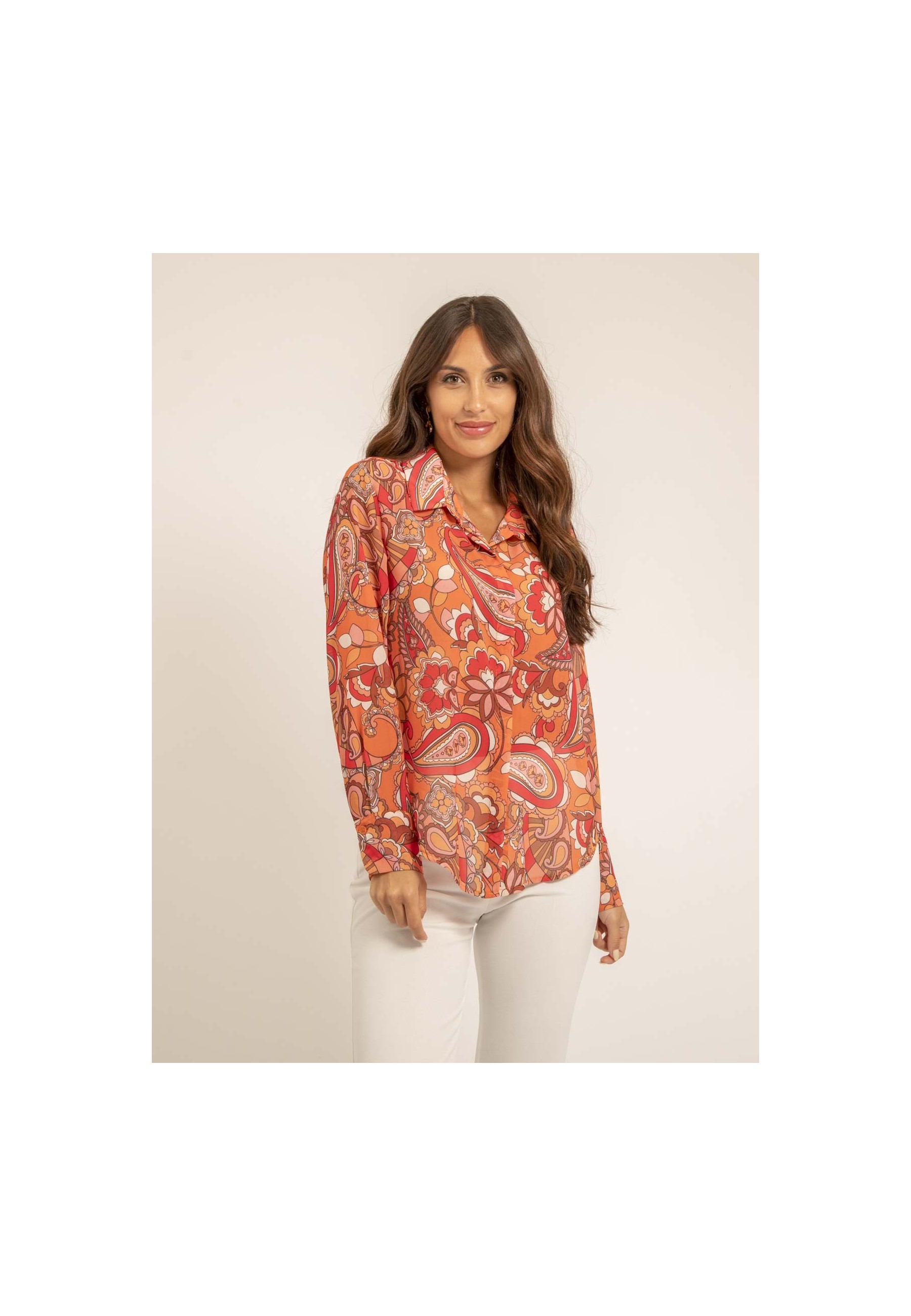 Cette chemise Dona Lisa est confectionnée dans un tissu fluide et léger pour un porter agréable. Elle se distingue par son élégant imprimé en all-over, dans l'esprit rétro de notre collection. Cette chemise pour femme à col classique s'accordera parfaitement avec un pantalon taille haute et une paire d'escarpins pour une allure féminine et sophistiquée.