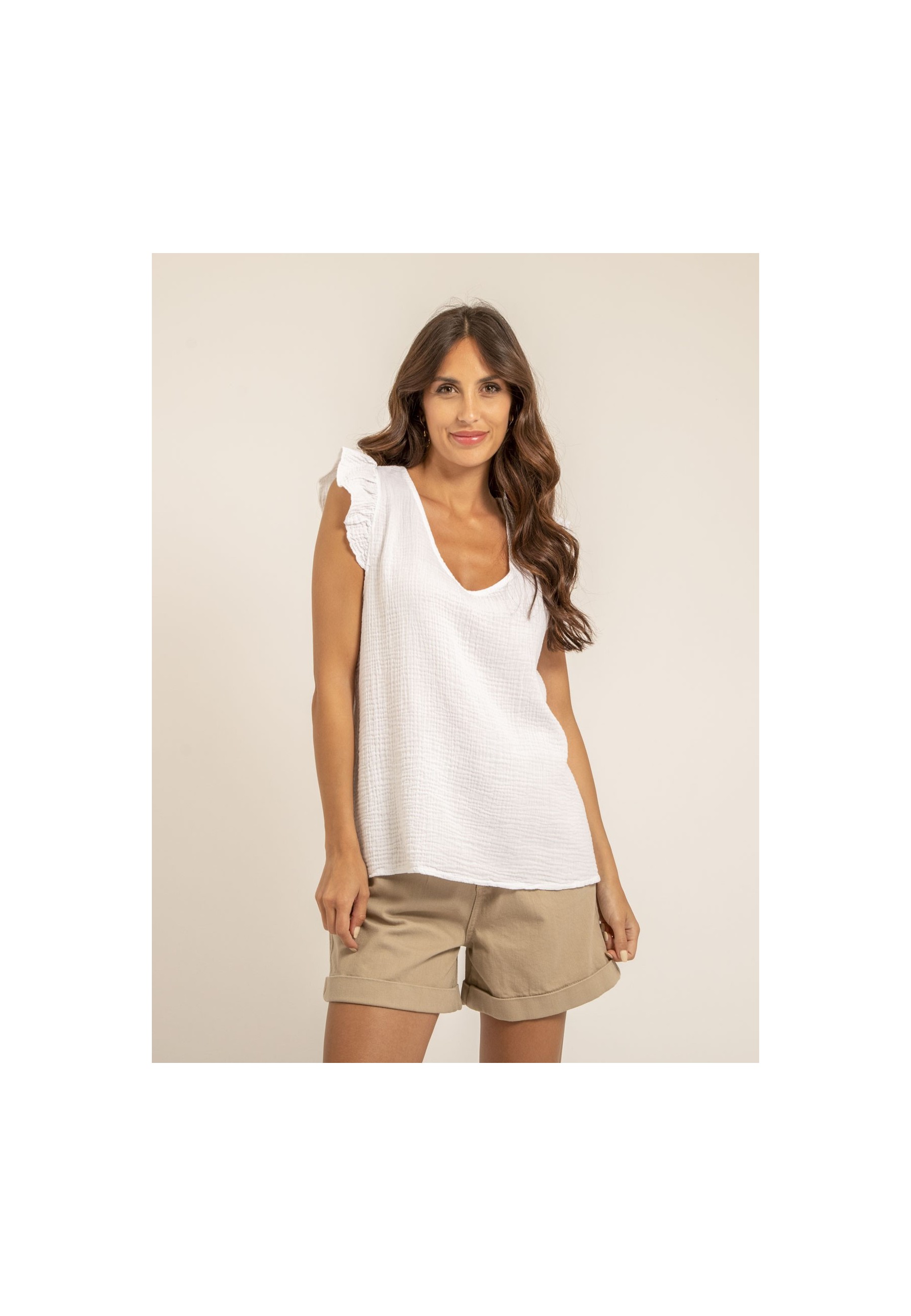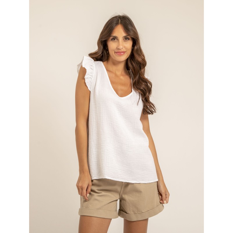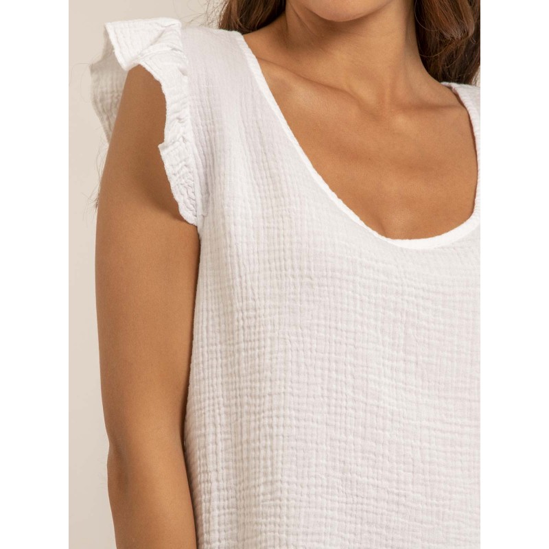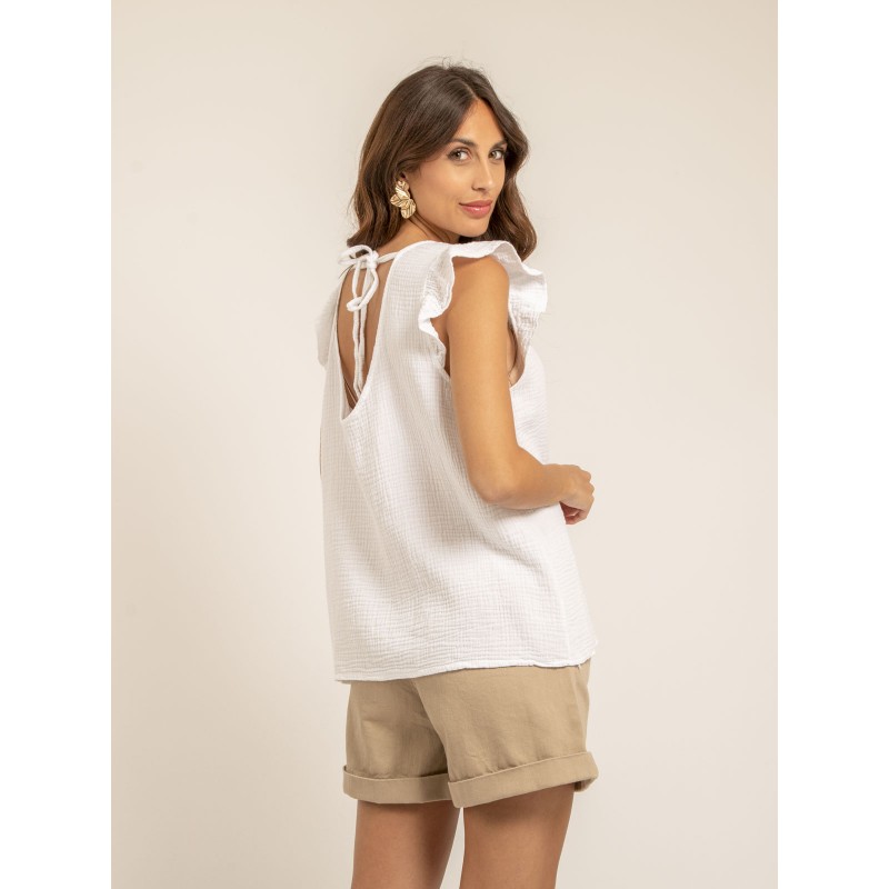 Allure romantique pour ce top en gaze de coton signé Dona Lisa. Le vêtement souffle le chaud et le froid en associant coupe sage et encolures profondes à l'avant et à l'arrière qui laissent voir la peau. Un haut au joli volume, à porter toute la belle saison.