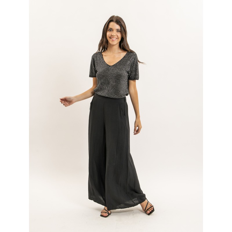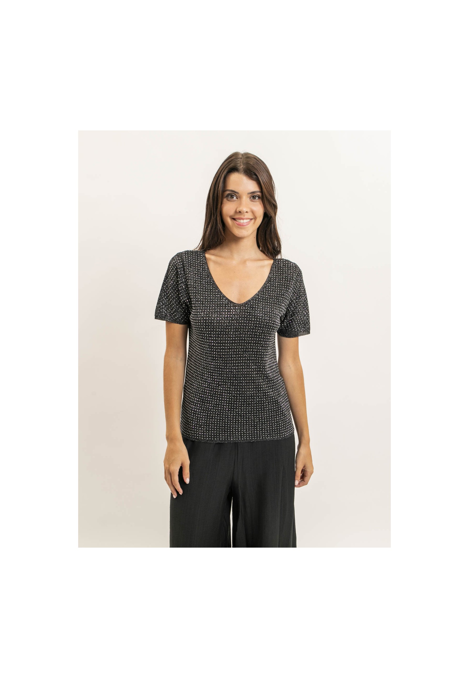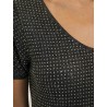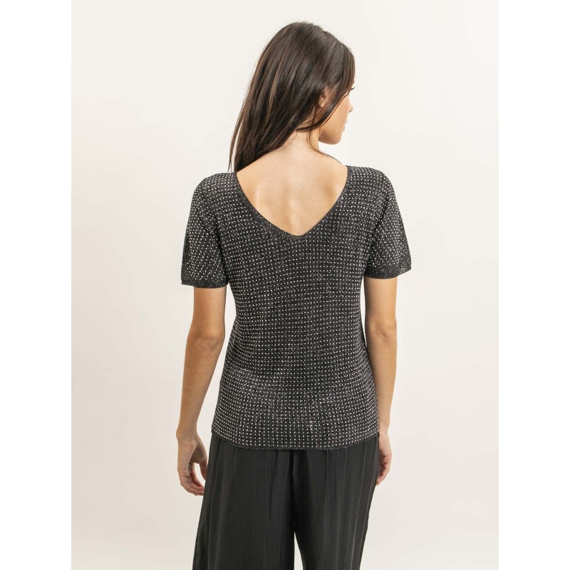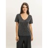 Un top élégant qui allie subtilement confort et sophistication. Parfait pour sublimer vos tenues, il se distingue par son tissu scintillant et sa coupe près du corps. Idéal pour vos soirées d'été ou pour ajouter une touche de glamour à vos journées, ce modèle intemporel vous accompagne avec style.