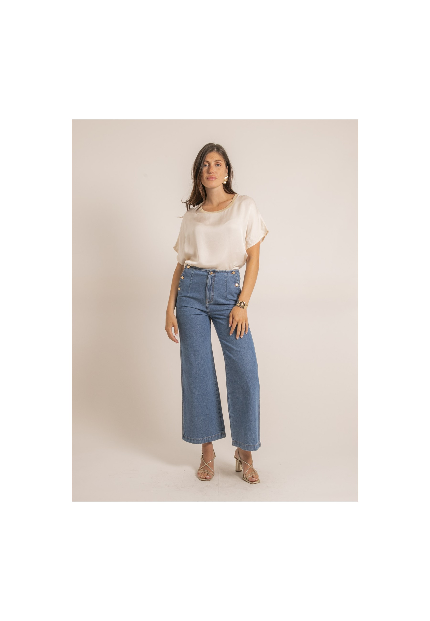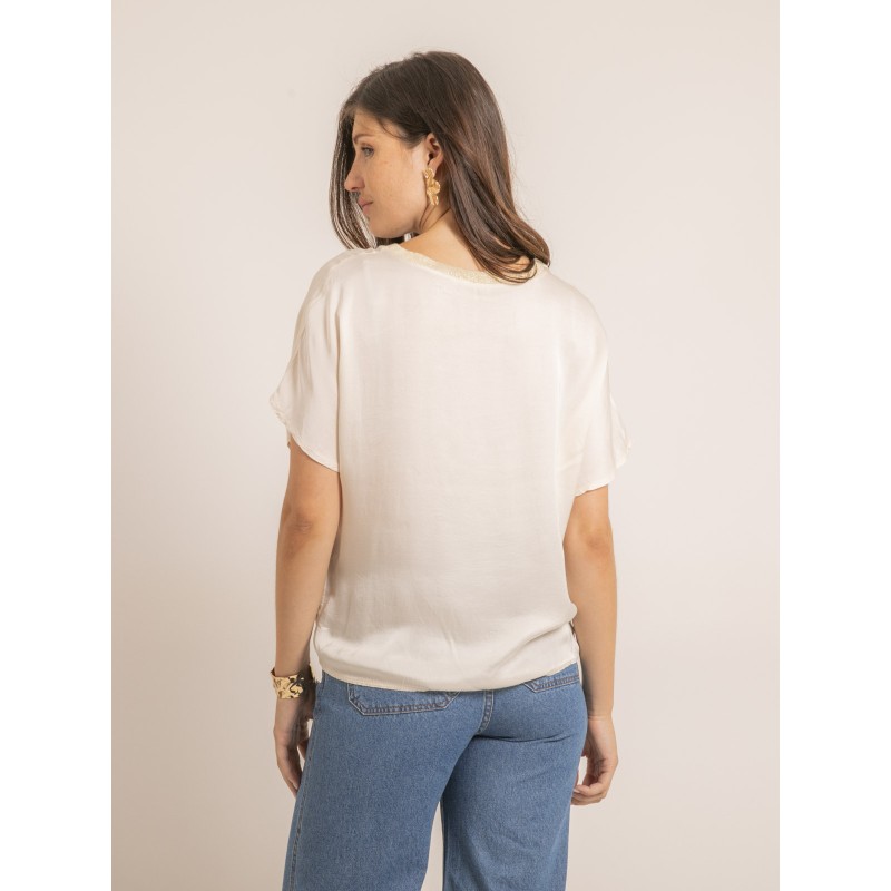 Ce top fluide et léger incarne l’élégance décontractée avec sa coupe ample et son encolure subtilement rehaussée de fils scintillants. Confectionné dans une matière douce et agréable, il apporte une touche de raffinement à vos tenues tout en assurant un confort optimal. Idéal pour les journées ensoleillées ou les soirées d'été, il se marie parfaitement avec un jean ou une jupe pour un look chic et sans effort.