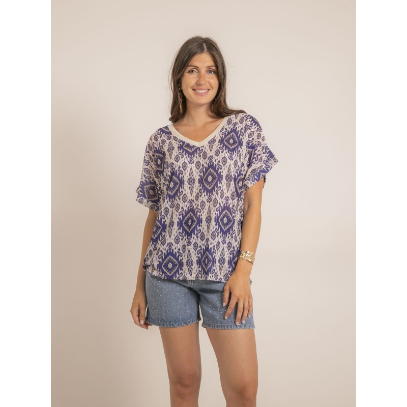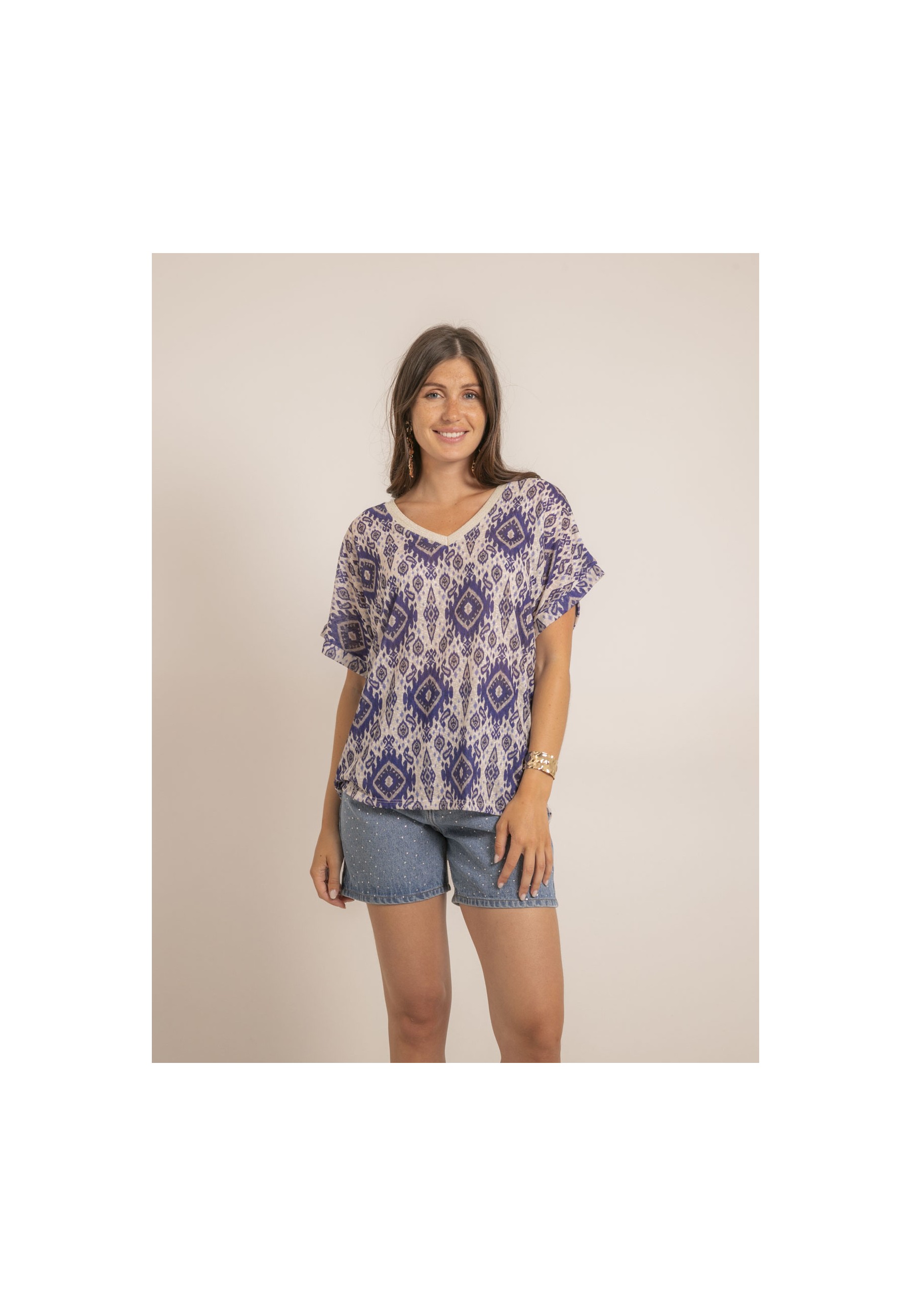 Apportez une touche d'élégance et de fraîcheur à votre garde-robe avec ce haut léger et fluide signé Dona Lisa, parfait pour la saison printemps-été. Son imprimé aztèque évoque l'évasion et le raffinement, tandis que sa coupe décontractée assure un confort absolu. Une pièce versatile pour toutes vos occasions.