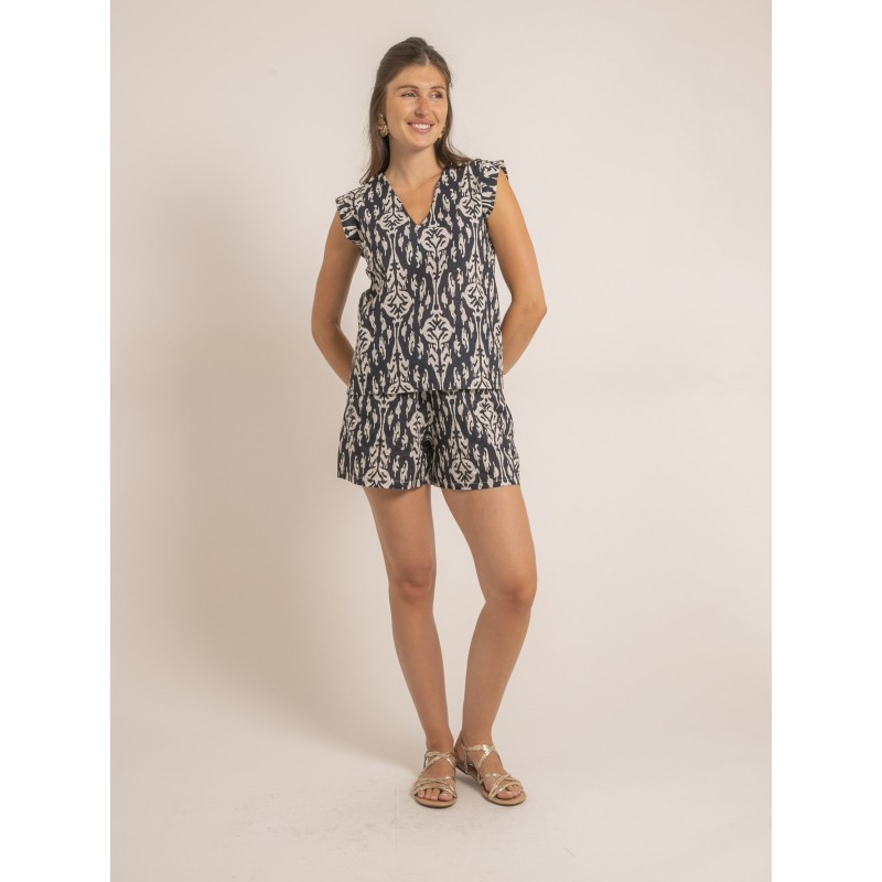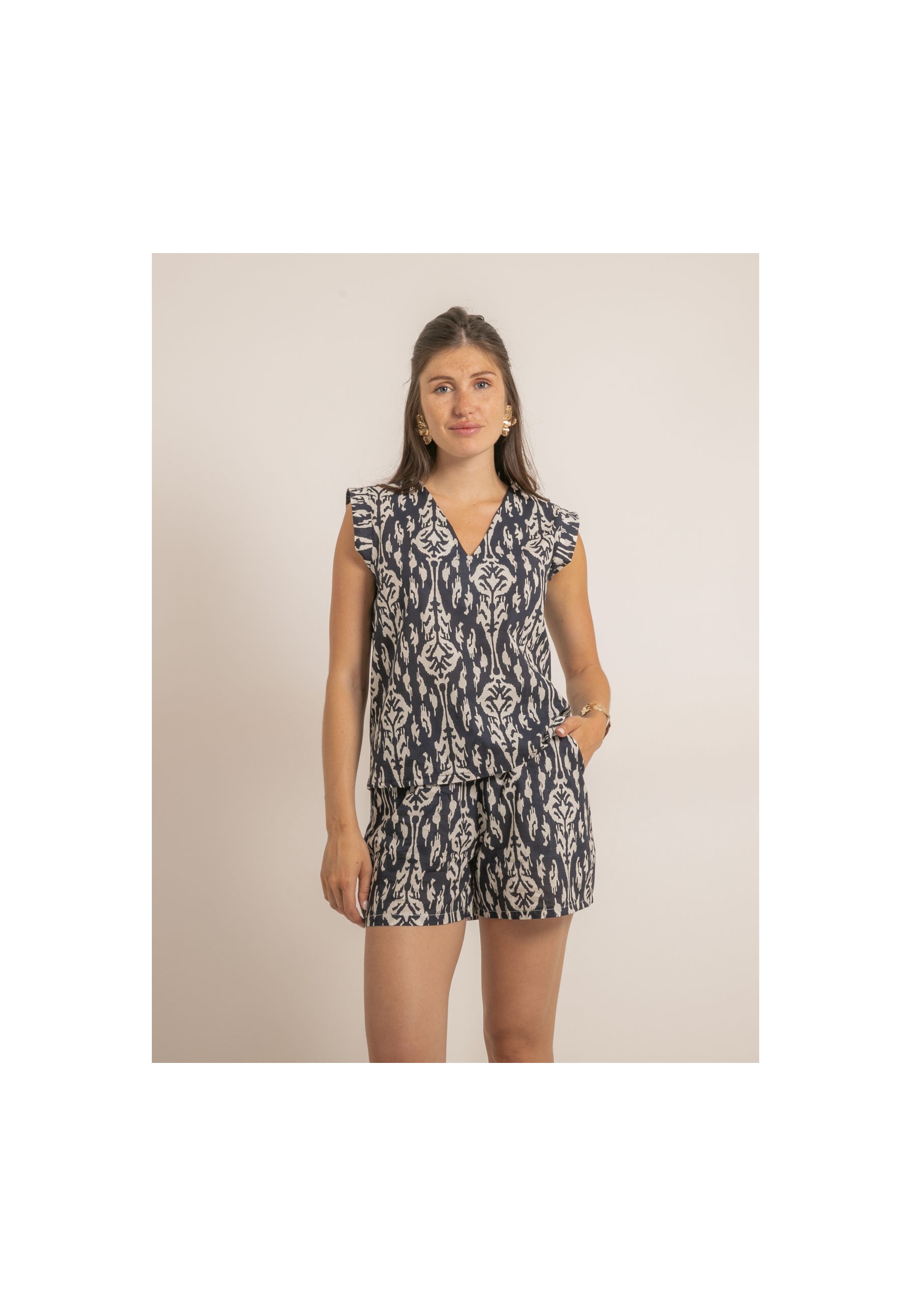 Apportez une touche de légèreté et d'élégance à votre garde-robe avec ce top au motif délicatement travaillé. Parfait pour la saison printemps-été, il combine fluidité et style intemporel grâce à sa coupe aérienne et ses détails subtils, pour un confort optimal au quotidien.