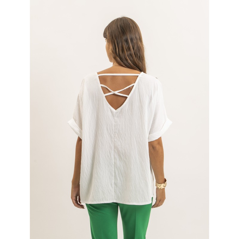 Idéal pour les journées ensoleillées, ce top Dona Lisa conjugue élégance et décontraction grâce à sa coupe fluide et ses détails subtils. Son dos délicatement orné de lanières croisées lui confère une touche originale, parfaite pour un look casual-chic. Une pièce légère et raffinée, incontournable de la saison.