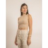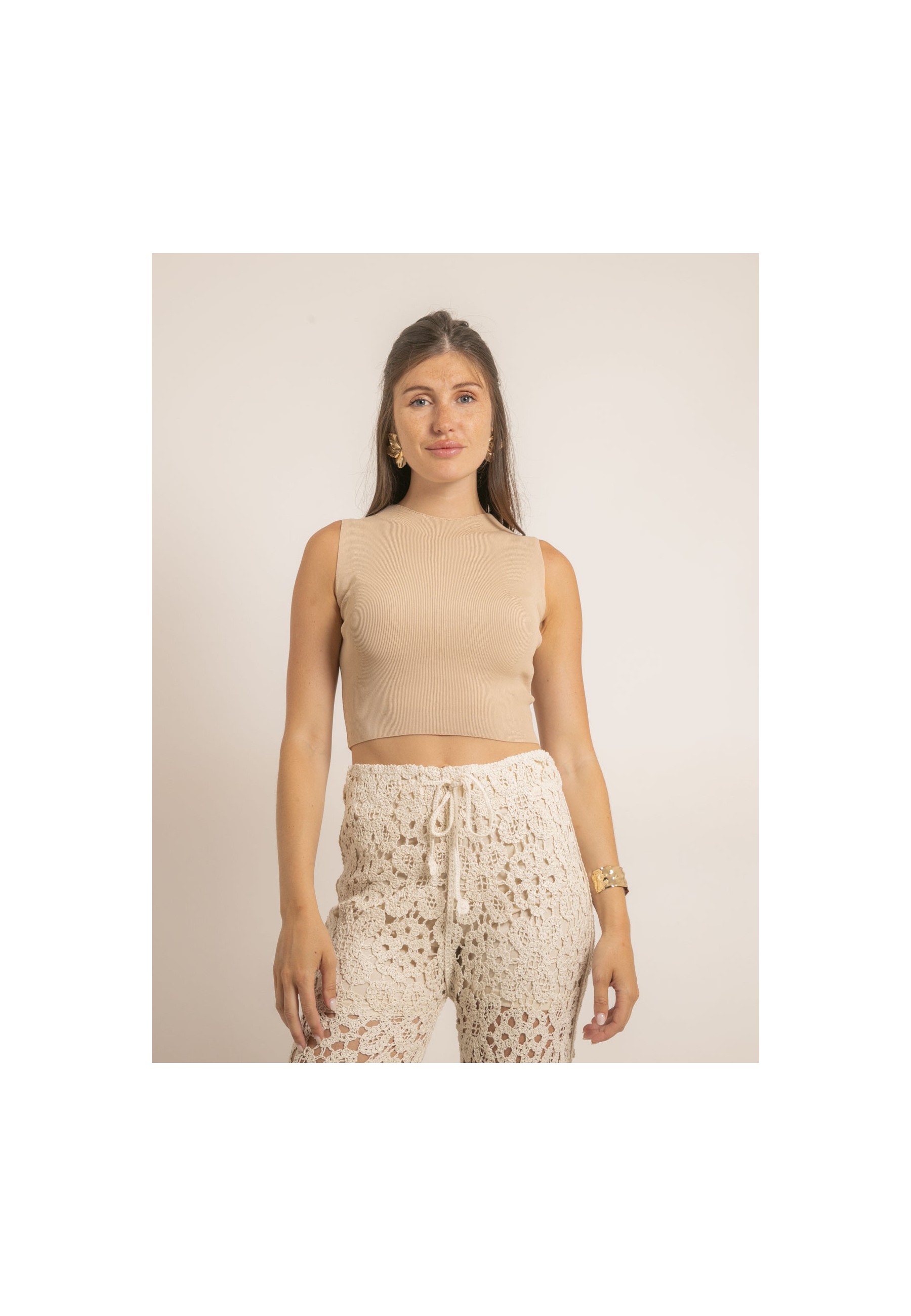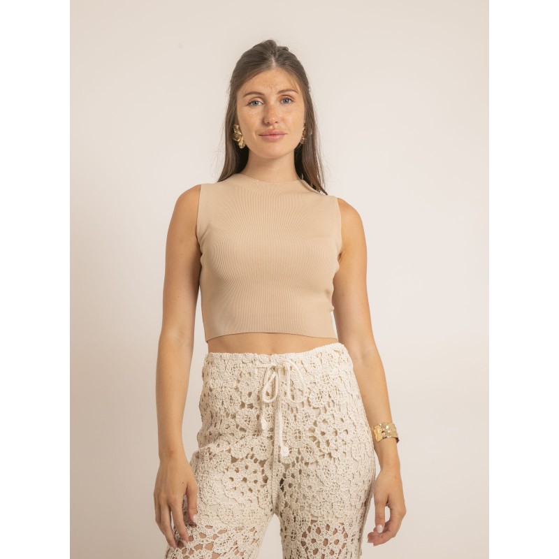 Ce crop top sans manches allie minimalisme et élégance, idéal pour sublimer vos looks estivaux. Sa coupe ajustée et son col montant structuré apportent une touche moderne, tout en offrant un confort optimal. Polyvalent, il s'adapte aisément à toutes vos tenues.
