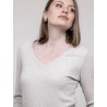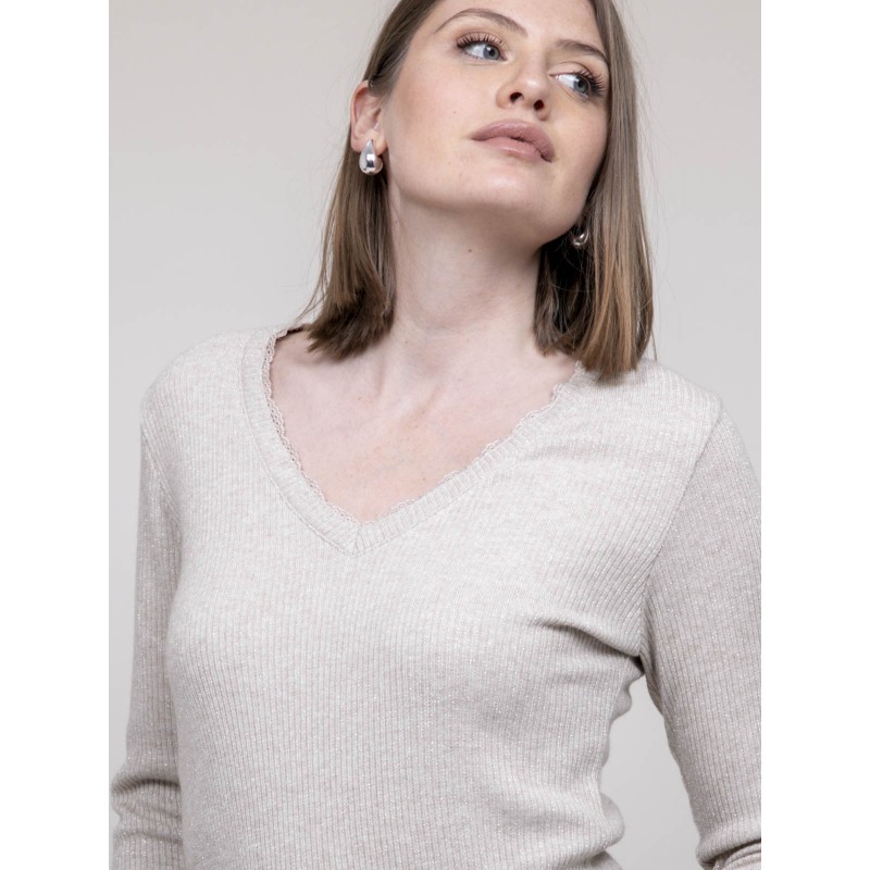 Chic et minimaliste, ce top est le basique hivernal revisité pour sublimer votre quotidien. Sa maille délicate légèrement scintillante apporte une touche lumineuse, tout en douceur. Parfait pour réchauffer vos looks d’hiver sans jamais compromettre l’élégance. Idéal pour les femmes à la recherche d’un style raffiné, moderne et confortable.