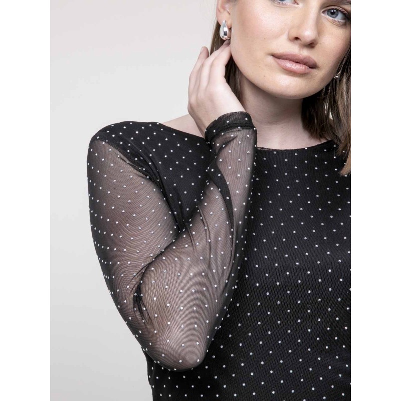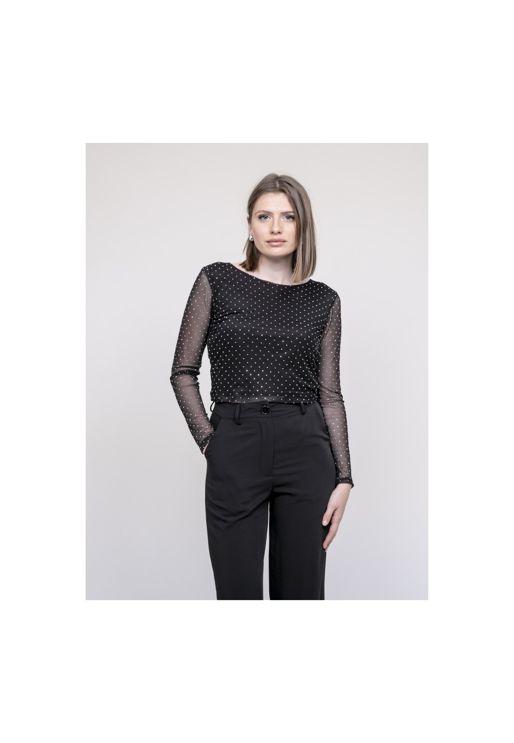 Féminin, graphique et légèrement audacieux, ce top noir à strass signé Dona Lisa est la pièce parfaite pour sublimer vos tenues hivernales avec une touche chic. Grâce à sa maille délicate et son jeu de transparence sur les manches, il joue la carte du raffinement tout en restant confortable et facile à associer. À porter aussi bien sous un blazer pour le bureau que seul en soirée, ce top est une véritable allié mode pour les femmes en quête d’élégance moderne.
