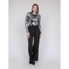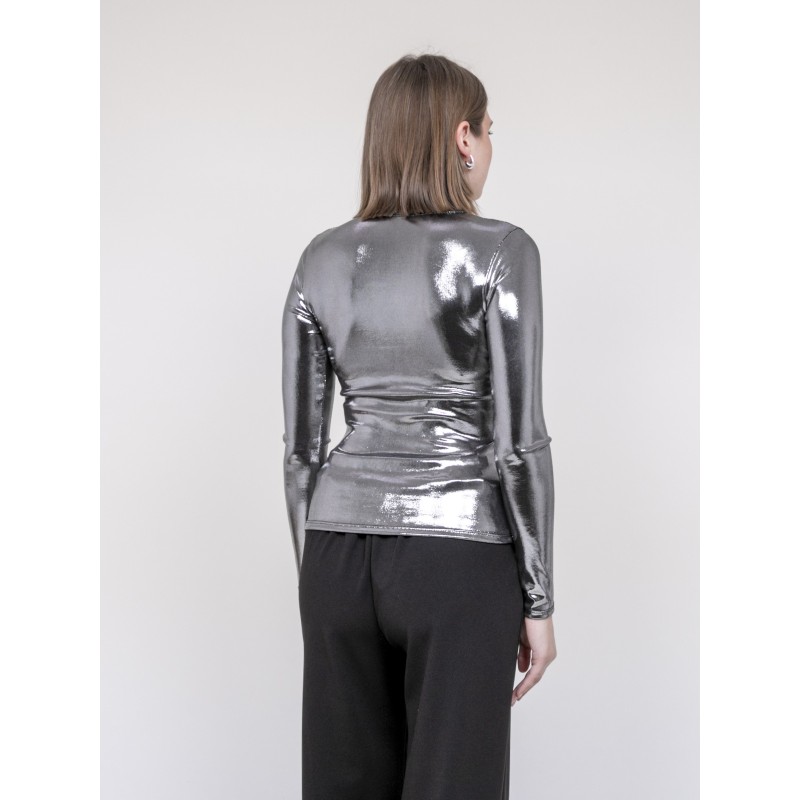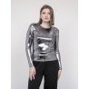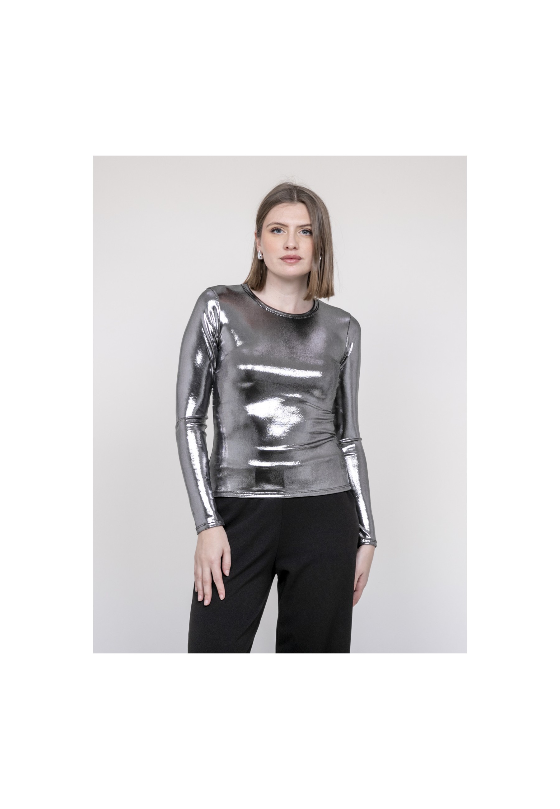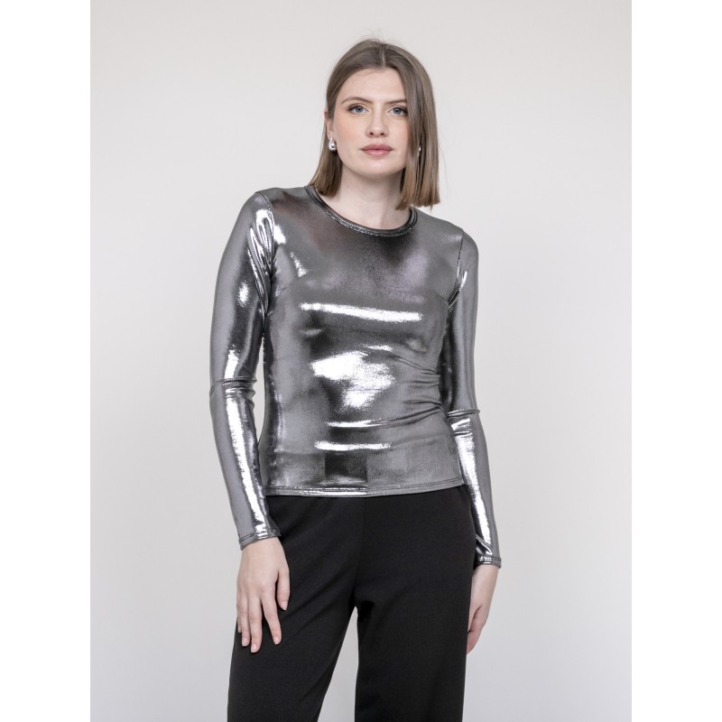 Parfait équilibre entre audace et sophistication, ce top métallisé argenté illumine les journées d'hiver et électrise les soirées. Avec sa matière effet miroir ultra-lumineuse et sa coupe seconde peau, il est la pièce maîtresse des looks affirmés. À porter aussi bien avec un pantalon taille haute pour une allure chic que sur une jupe satinée pour une touche résolument festive. Idéal pour une femme qui veut briller, avec style.