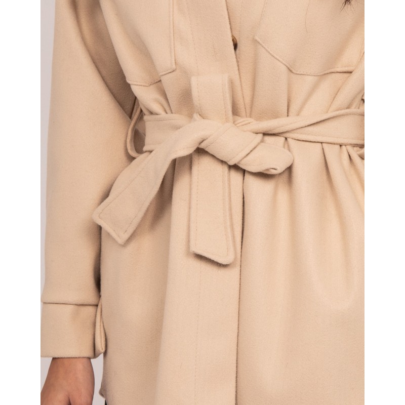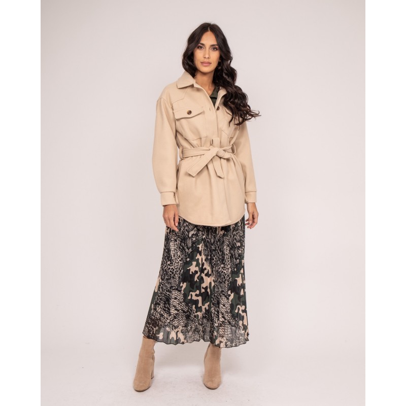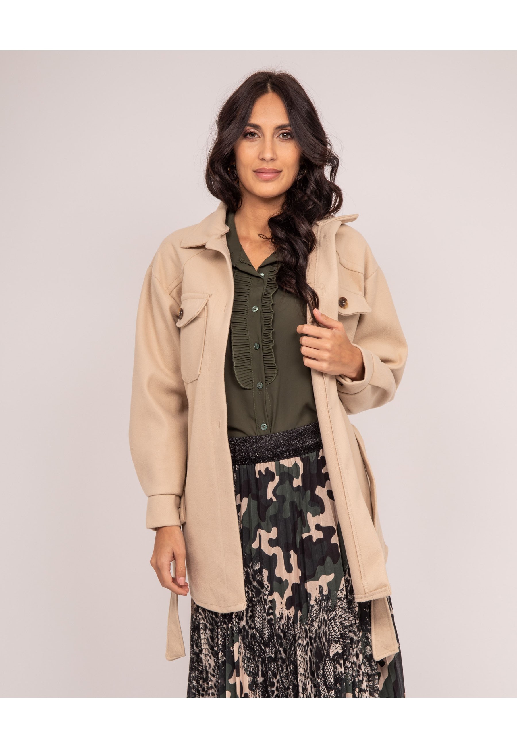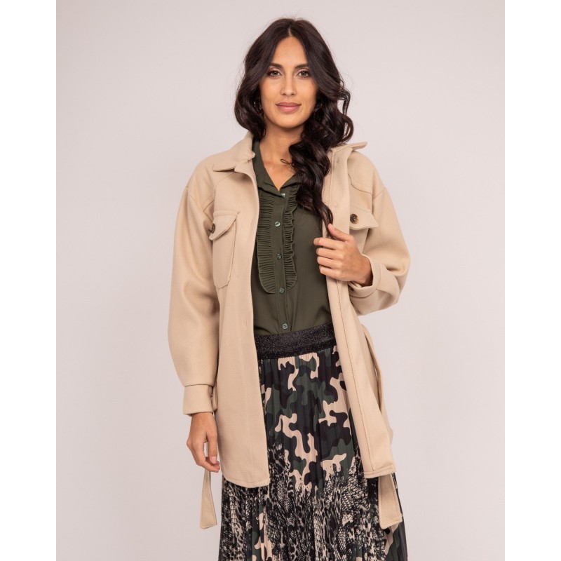 Détails produit Col chemise classique, pointes libres Manches longues Fermeture boutonnée Deux poches à rabats boutonnés sur poitrine Ceinture à passants, ceinture en tissu assortie à nouer à la taille Base arrondie... En savoir plus >