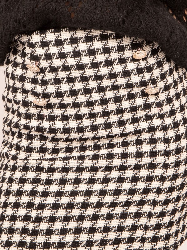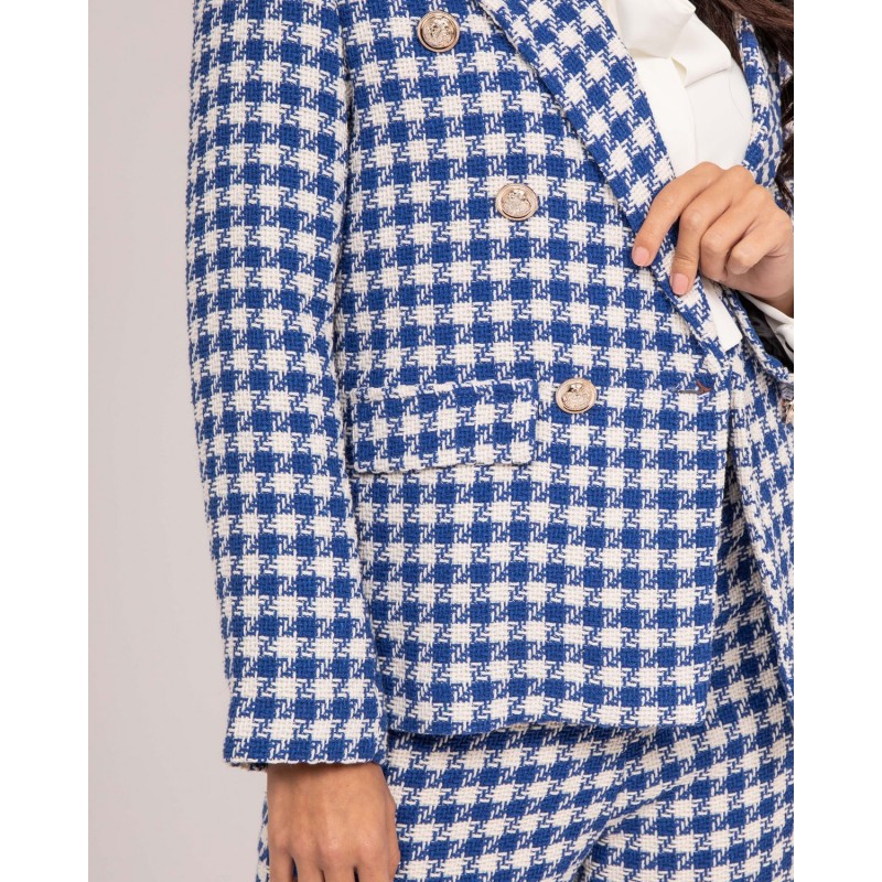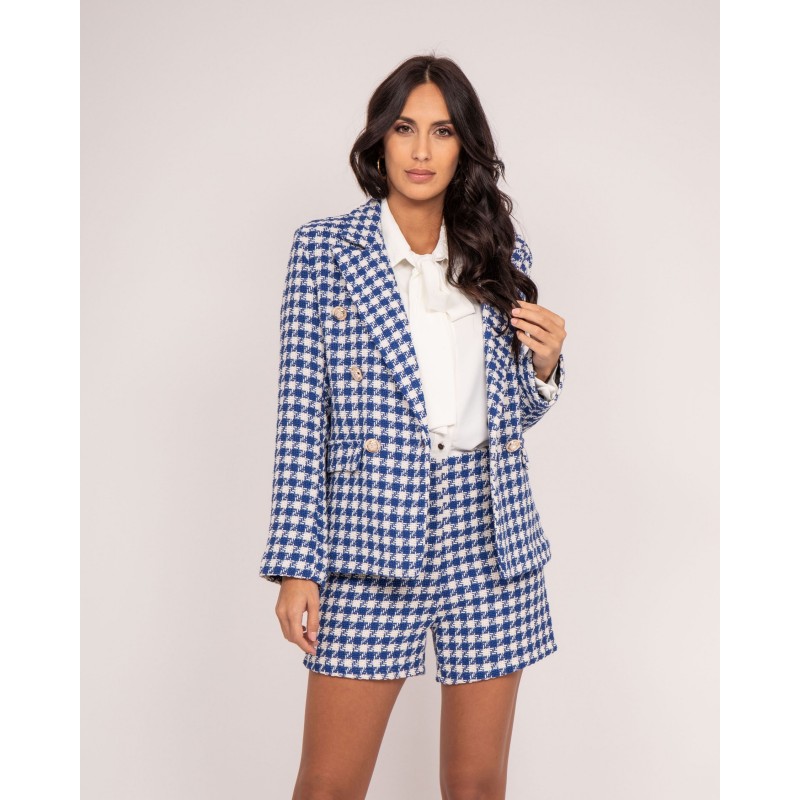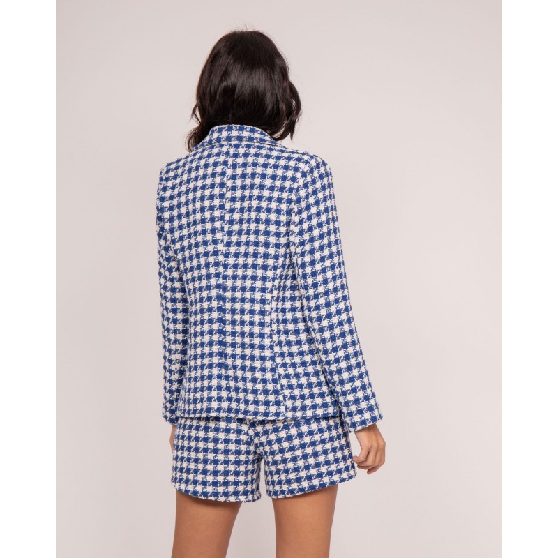 Cette veste Dona Lisa est sublimée par son motif pied-de-poule bicolore en all-over. Elle se distingue par ses boutons dorés sur le devant, pour une touche sophistiquée et glamour. Confectionnée en coton mélangé pour un maximum de confort, cette veste de blazer réveillera vos tenues les plus simples. Vous pourrez aussi la porter avec le short XUEL pour un total look très réussi.