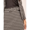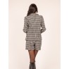 Cette veste noire et blanche Dona Lisa se distingue par sa coupe impeccable et ses détails contrastés. Réalisée dans une étoffe en tweed agréable, elle conserve les caractéristiques de la veste de costume classique avec son col cranté et ses fausses poches à rabat latérales. Notre Maison mise sur une touche rétro avec son motif pied-de-poule en all-over, ainsi que deux rangées de boutons noirs sur le devant. Vous sublimerez cette veste de tailleur avec sa jupe short assortie référence XAGARV.