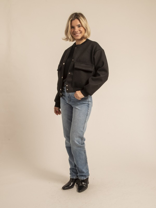 Ce bombers effet laine Dona Lisa est une pièce parfaite pour ajouter une touche cosy à vos tenues d'hiver. Sa matière douce et ses finitions soignées en font un indispensable pour les journées froides. Polyvalent et confortable, il se marie aussi bien avec un look décontracté qu'élégant.